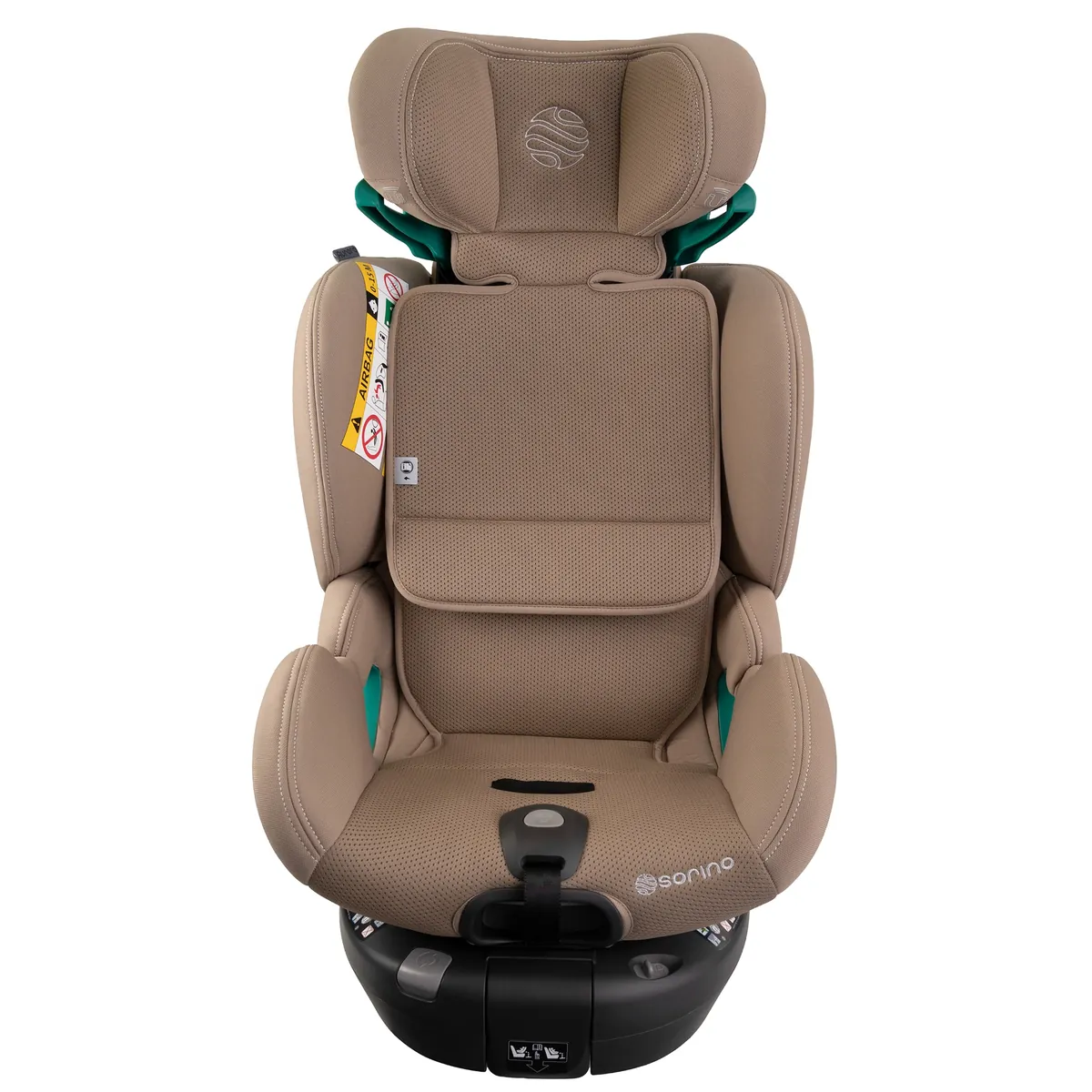 - Zagłówek fotelika Sorino Aurora został wyposażony w specjalną piankę absorbującą energię uderzenia, co zwiększa bezpieczeństwo dziecka w razie kolizji.